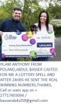 Goodday viewers, my heart is filled with joy because of Abdul Basser the lottery spell caster who helped me win the lottery, a colleague of mine at work told me about his exploits on how he had helped so many people by giving them the lottery winning numbers so I contacted him via the email given to me by Dan my colleague, he (Abdul Basser) explained every detail to me and I obeyed all he asked of me diligently after 24hours he gave me the numbers, I played the numbers as instructed and I won the power ball jackpot of $57.765 millions, my gratitude to you Abdul Basser for your help and I promise never to stop telling people about your good works in my life. Below is his personal email if you need his help too basserabdul59@gmail.com,call/whatsapp him on +27717403094 or visit his website for more services,https://africanancientspells.mystrikingly.com/